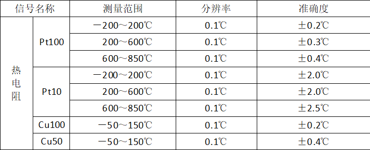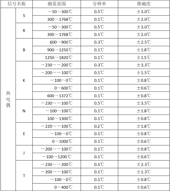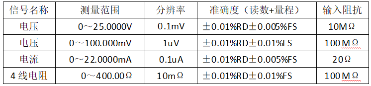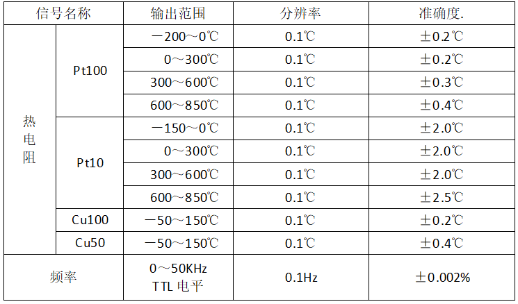 | 信號名稱 | 輸出范圍 | 分辨率 | 準確度(讀數(shù)+量程) |